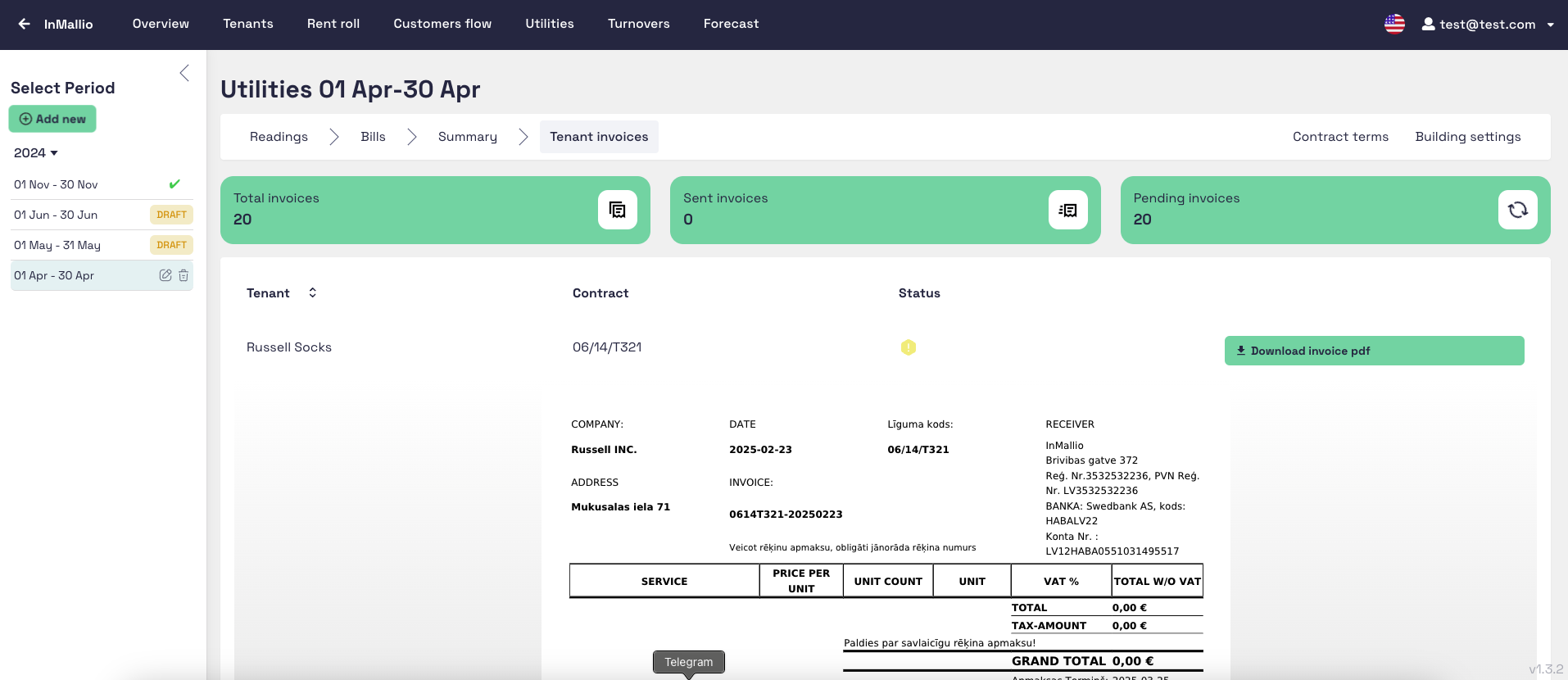Страница Utilities — это мощная функция нашего программного обеспечения, которая позволяет управляющим настраивать и управлять выставлением счетов за коммунальные услуги для арендаторов. Она поддерживает сложные сценарии, такие как назначение счетчиков нескольким помещениям, индивидуальные формулы расчета и автоматическая генерация счетов. Хотя система предоставляет широкие возможности, первоначальную настройку рекомендуется доверить специалистам InMall для обеспечения точности и эффективности.